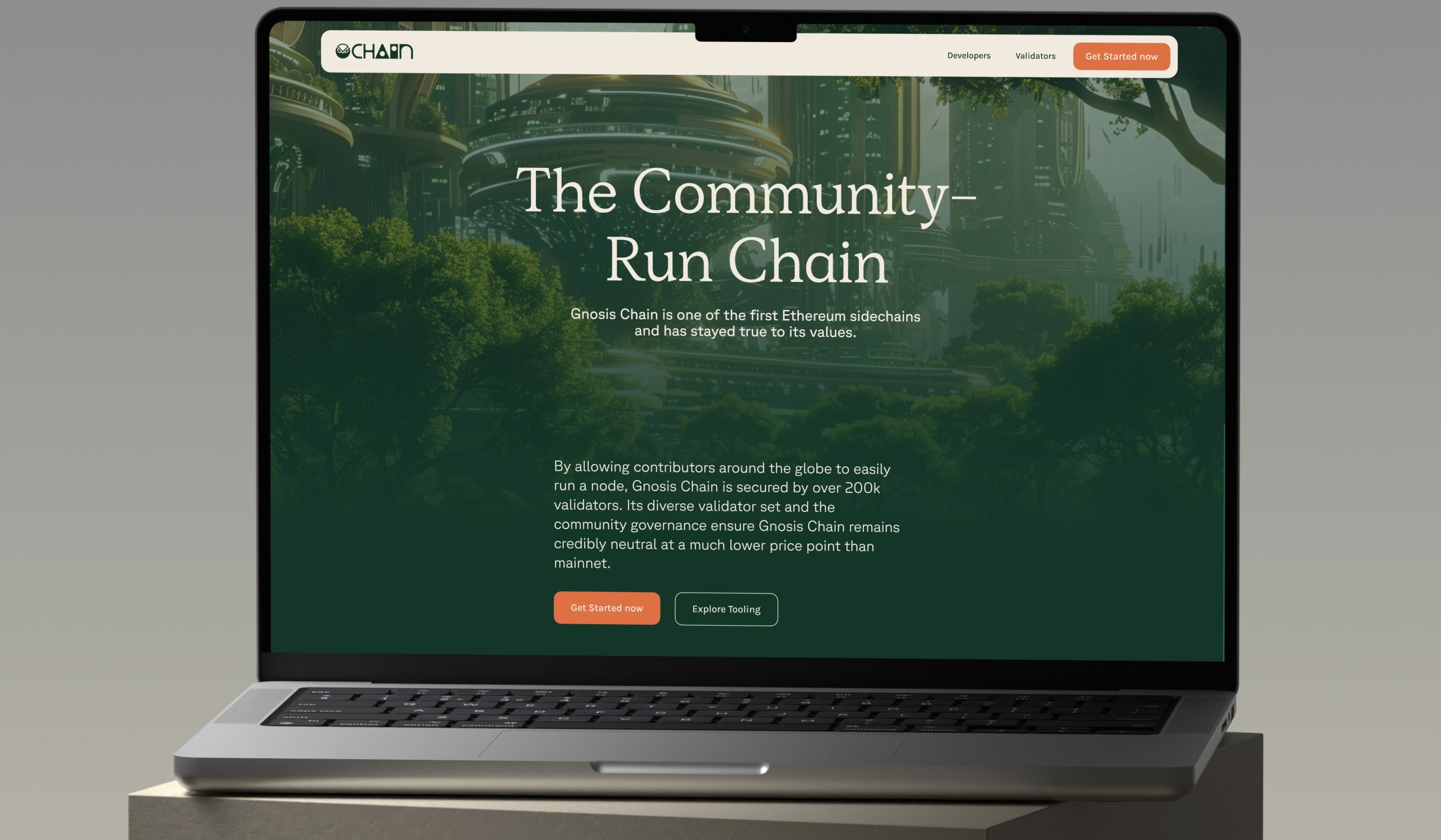 The design process began with in-depth research into Gnosis Chain’s existing branding and the Solarpunk aesthetic, ensuring a visually compelling and future-forward identity.