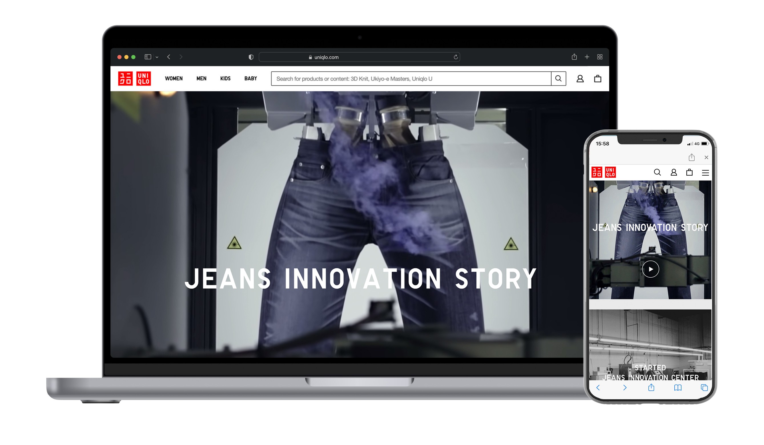 Part 1 highlights the innovative manufacturing and meticulous design process of Uniqlo's jeans, which includes working with fabric makers and experts, as well as the use of cutting edge technologies such as the latest laser technology to reproduce realistic whiskers and friction lines for a well-worn look.