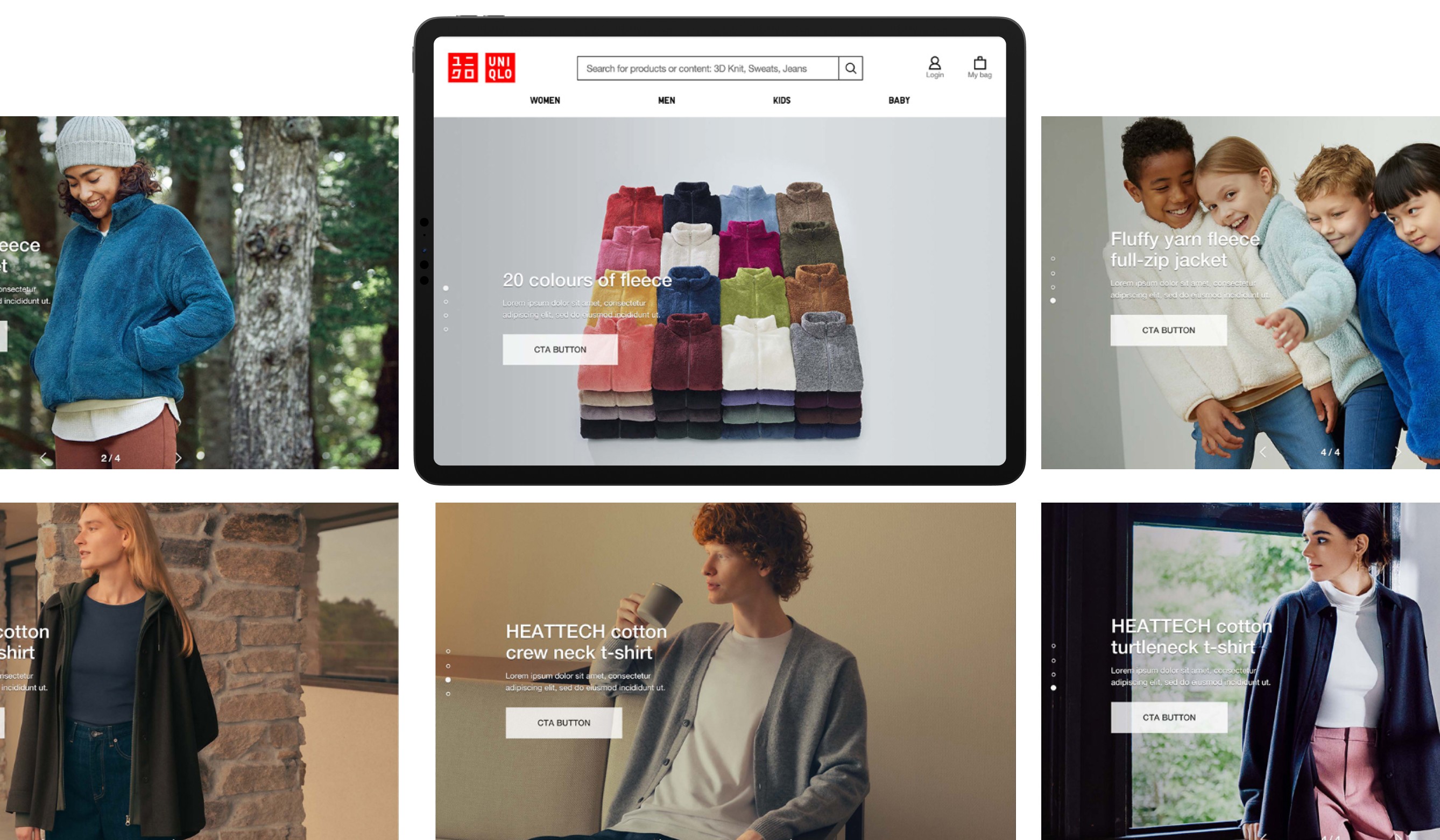 Uniqlo Homepage Vertical/Horizontal Slide action visual concept to showcase various product lines